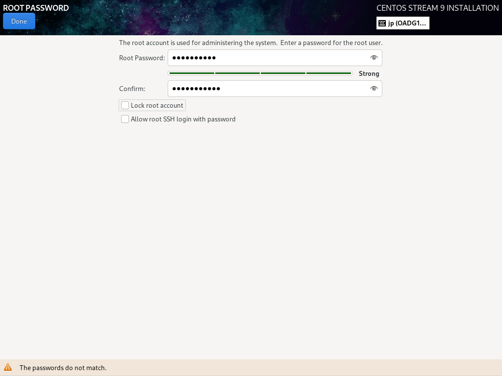 | [11] | بازگشت به بخش خلاصه نصب پیش فرض مانند [3]، بعد، کلیک کنید [Root Password] نماد زیر [USER SETTINGS] دسته بندی اگر حساب کاربری root را فعال کنید، رمز عبور حساب کاربری روت را در اینجا تنظیم کنید. |