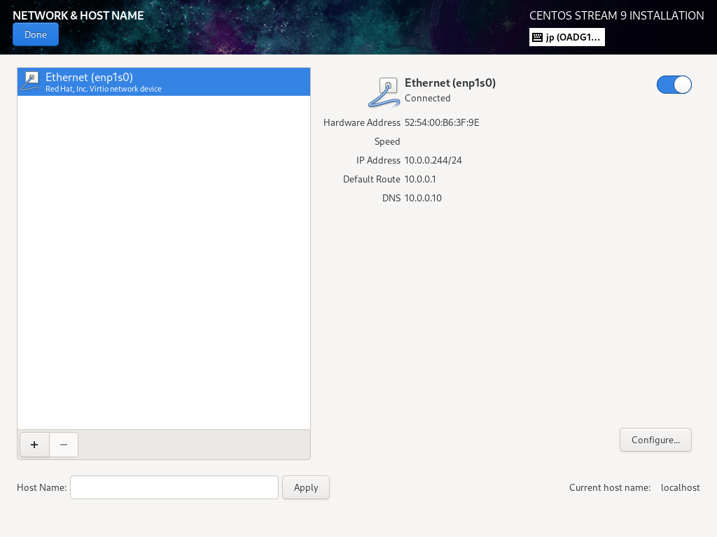 | [10] | بازگشت به بخش خلاصه نصب پیش فرض مانند [3]، بعد، کلیک کنید [Network & Host Name] نماد اگر از قبل یک نام میزبان برای این سرور جدید CentOS Stream دارید، نام میزبان را وارد کنید [Host Name] زمینه (امکان تنظیم بعد از نصب) |