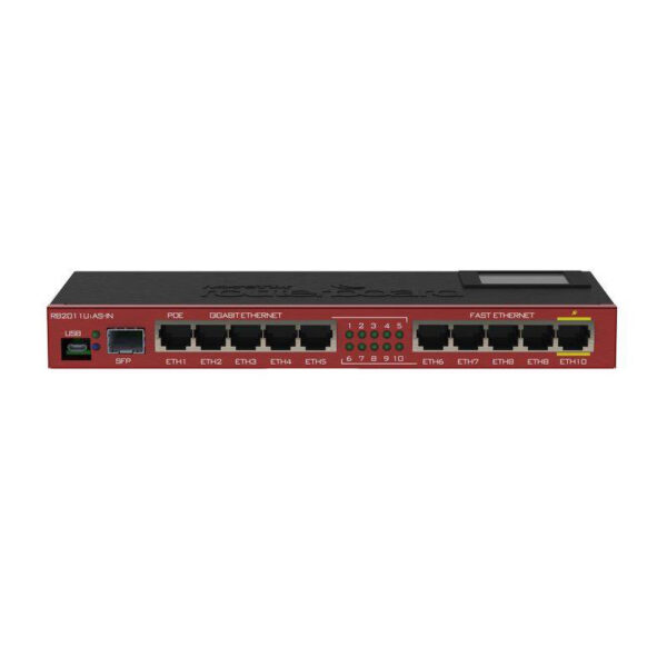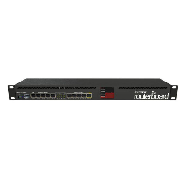 7x Gigabit Ethernet, 1x Combo port (SFP or Gigabit Ethernet), 1xSFP+ cage, 9 cores x 1GHz CPU, 2GB RAM, LCD panel, passive cooling desktop enclosure, SmartCard slot, RouterOS L6, PSU