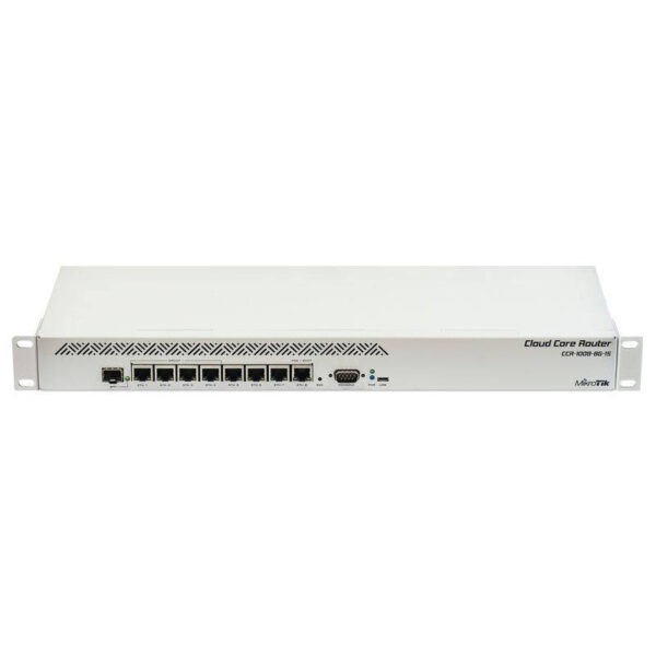 7x Gigabit Ethernet, 1x Combo port (SFP or Gigabit Ethernet), 1xSFP+ cage, 9 cores x 1GHz CPU, 2GB RAM, LCD panel, passive cooling desktop enclosure, SmartCard slot, RouterOS L6, PSU